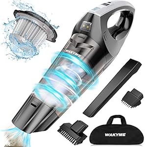 WAKYME Aspiradora de Mano, 9KPA Aspirador Mano Sin Cable Potente, Carga rápida Aspiradoras en Seco y Húmedo, Luz LED…