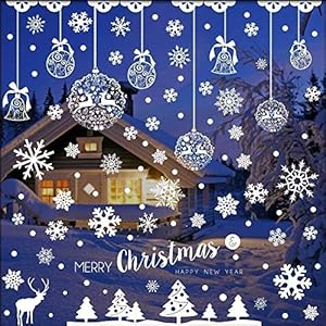 Flysee Pegatinas Navidad para Ventanas, adornos navideños, Pegatina Copo de Nieve Navidad, Decoración de Navidad para…