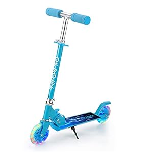 Ruedas LED de poliuretano: el patinete QIUYO cuenta con 2 ruedas con luz LED intermitente, no necesita pilas. Las luces se hacen más brillantes cuanto más rápido van tus hijos con ruedas.