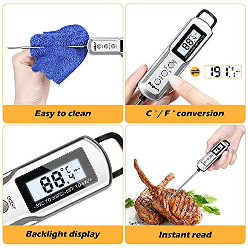 [Fácil de usar y Almacenar]: Anpro termómetro de cocina está equipado con una función de apagado automático de 10 minutos para evitar la descarga accidental de la batería. Con una cubierta trasera magnética y orificios para colgar, puede colgar el termómetro en un gancho de cocina, colocarlo sobre un cajón, sujetarlo a un delantal o colocarlo en el refrigerador.