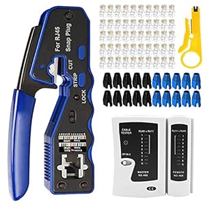 OKVNUO Alicates RJ45 CAT5 Comprobador Cables de Red CAT6 Kit de Herramientas Reparación y Prensador de Conectores…