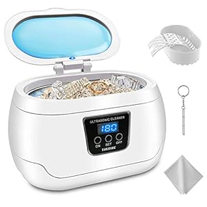 【Limpieza Multifuncional】 Limpieza en minutos usando solo agua del grifo. El limpiador ultrasónico se puede usar para joyería, vidrio, dentadura postiza, gafas, correa del reloj, monedas, vajilla, instrumentos de laboratorio, etc.